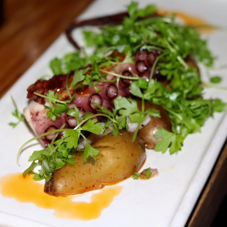 Grilled Calamari Fingerling Potato and Romesco Sauce